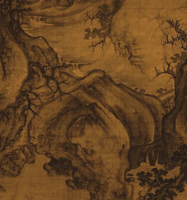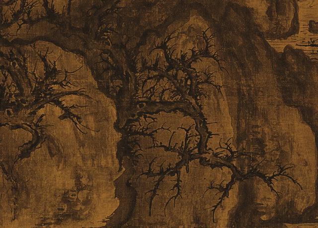 还有那些光秃秃的树,细看会发现树枝长得像螃蟹的爪子一样,弯弯曲曲,充满力量感。这不是枯死,这是在积蓄能量,随时准备抽芽。这种画法叫“蟹爪枝”,是郭熙的独门绝技。